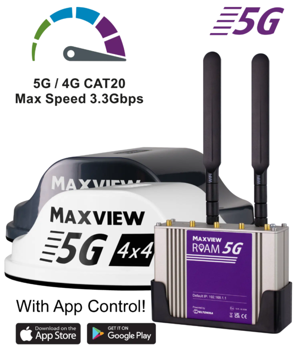 De Maxview Roam Full 5G App is ontwikkeld voor zeer eenvoudige en efficiënte bediening van de Maxview Roam 5G. Gebruiksvriendelijkheid is hier als hoofddoel gesteld. De Maxview Roam Full 5G App is nu beschikbaar voor om gratis te downloaden in de App Store & Google Play Store.